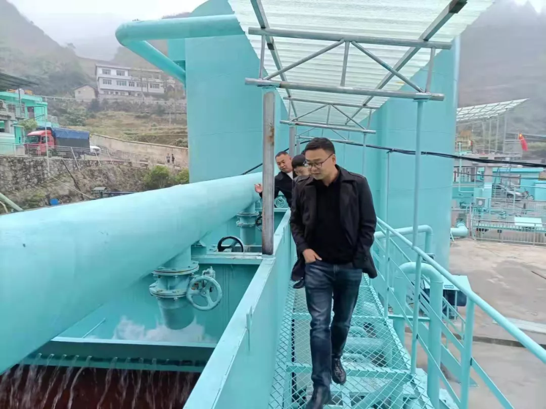 为保证瓮安县磷化有限责任公司白岩矿区玉华矿段污水处理厂新增污水处理系统项目的顺利验收,10月28日,贵州煤矿地质工程咨询与地质环境监测中心(以下简称:“咨询中心”)副主任龚朝兵前往项目点视察,贵州荣源环保科技有限公司(以下简称:“荣源环保”)总经理蒋良富、副总经理吴远斌陪同。